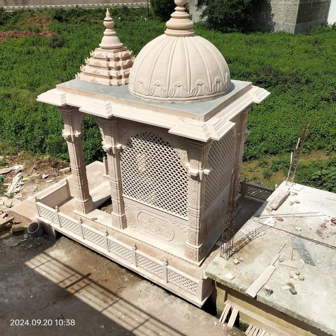 Yes, we manufacture sandstone mandirs for home gardens that are designed to withstand outdoor conditions.